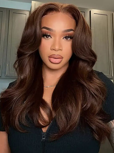 Chocolate Brown With Ginger Highlights 3D Body Wave 5X5 13x4 13x6 Lace Frontal Wigs