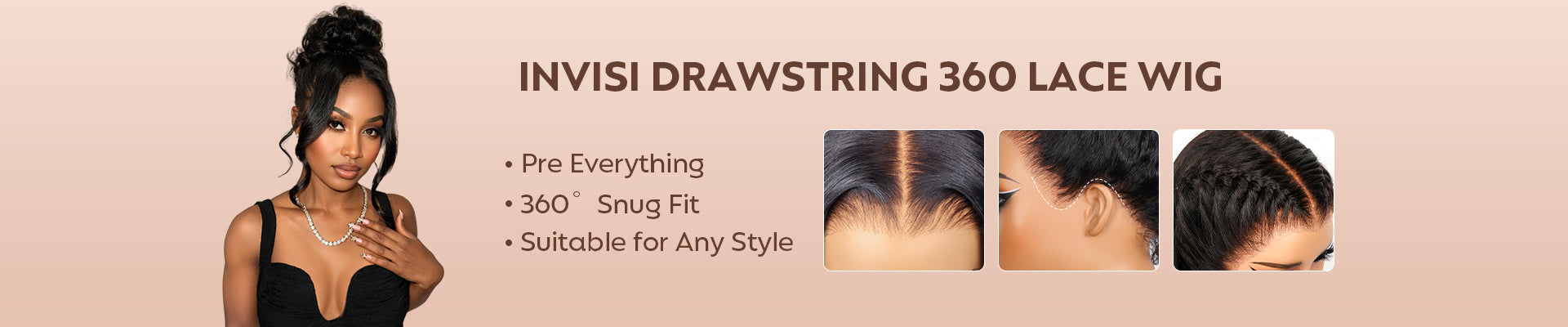 Kisslove Hair New Arrival Kinky Straight Hair with Spiral Curly Ends Invisi Drawstring 360 Lace Wig