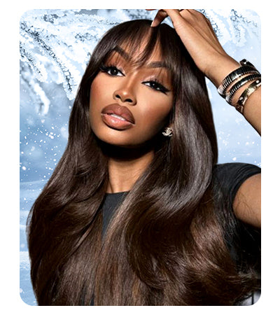 Kisslove Glueless Invisi-Drawstring 360 Lace Wig Dark Plum Color Curtain Bangs & Layered Body Wave Wig