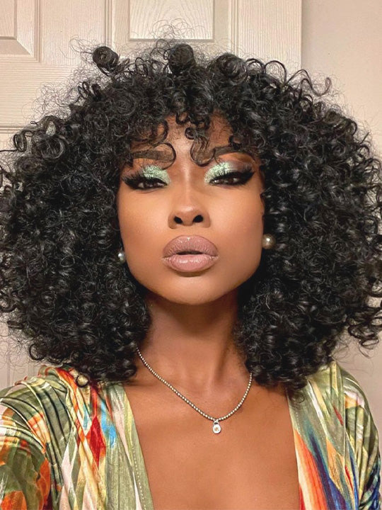 | Wig Type | Kinky Curly Bob Wig With Bangs |