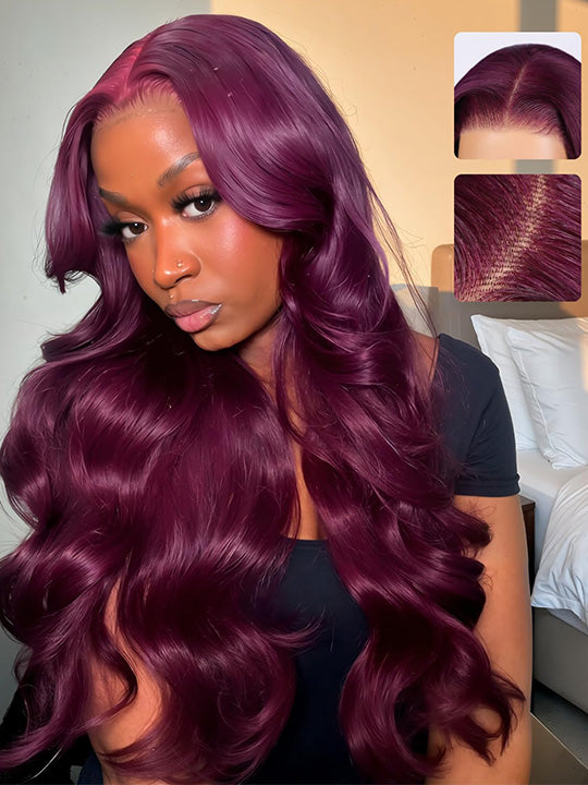 | Type de perruque | 360 perruques frontales en dentelle rebondissantes 99j bordeaux cheveux ondulés 3D |