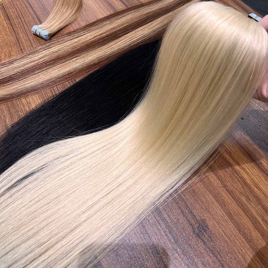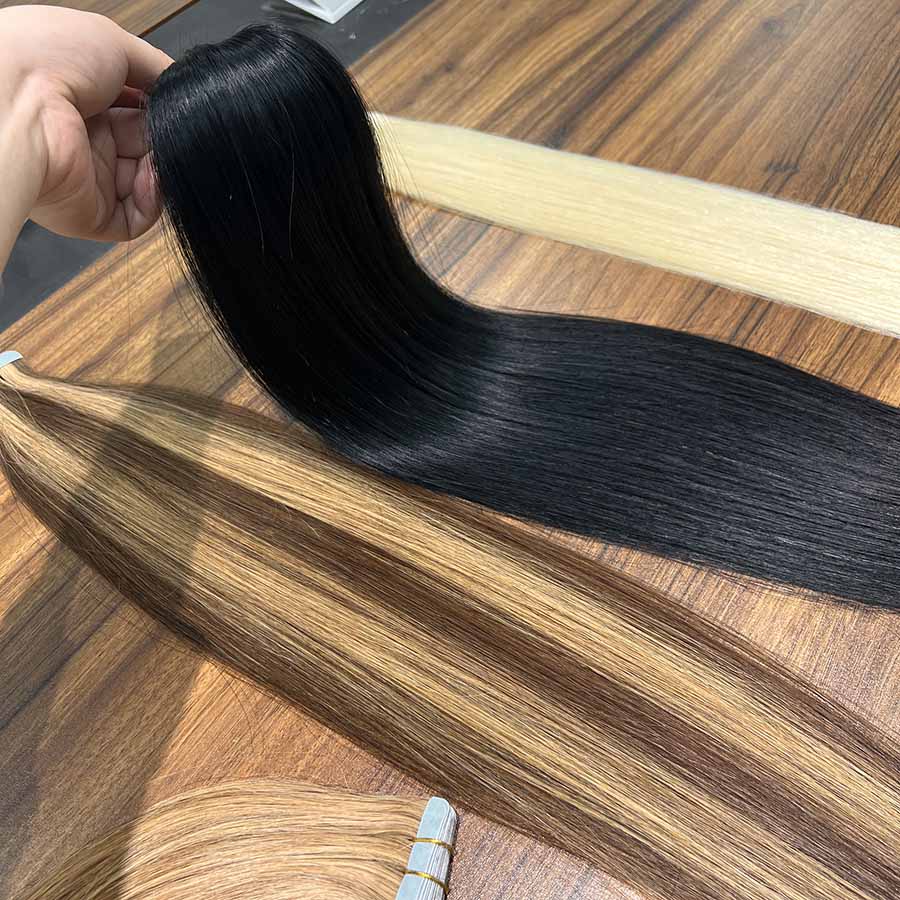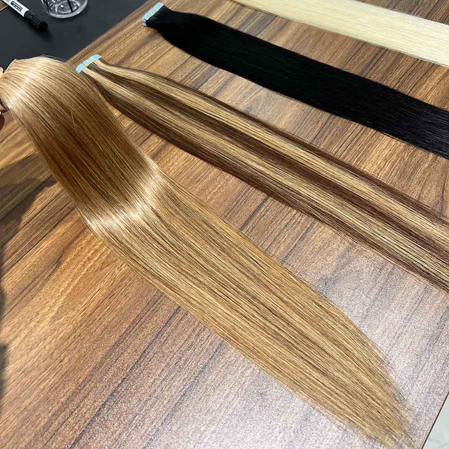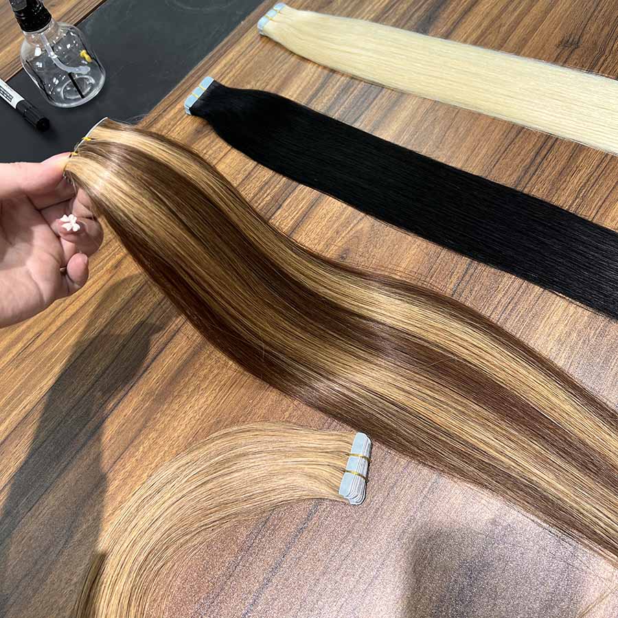 - 2. Our tape in extensions is made by real human hair, no animal hair or synthetic hair. Some substances may be mixed in the raw materials, we remove them by manual sorting and heating.If you meet the issue, tell us and we will exchange it for you.