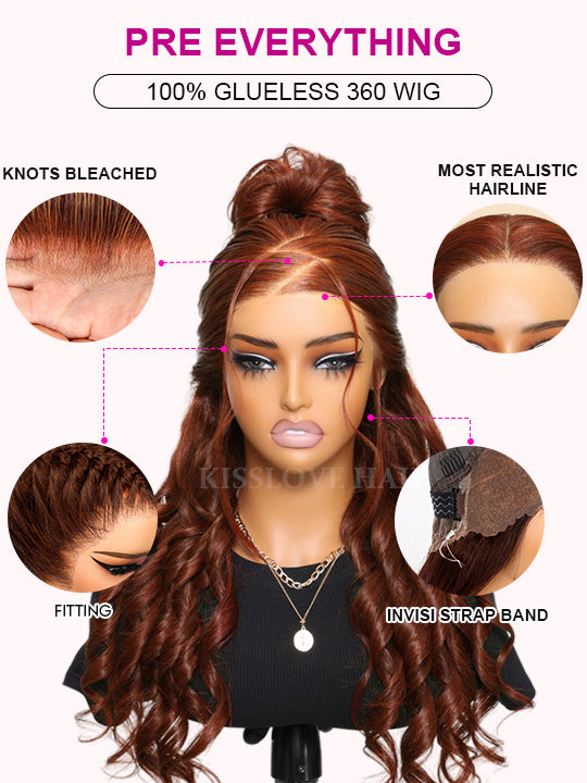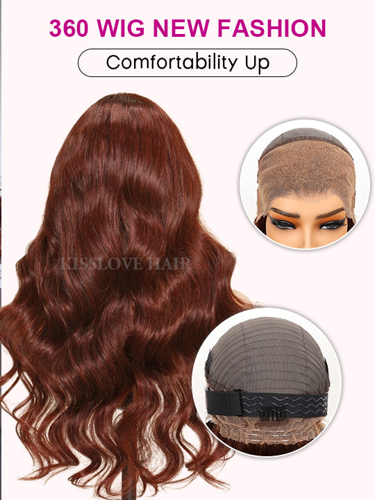 | Wig Type | 360 Lace Wig 3D Body Wave Reddish Brown Hair |