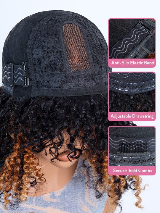 | Wig Type | Kinky Curly Bob Wig With Bangs |