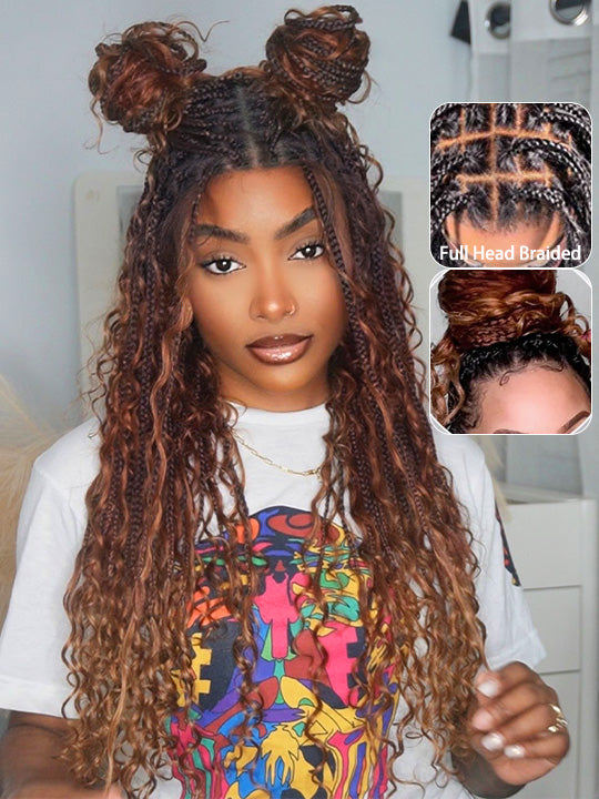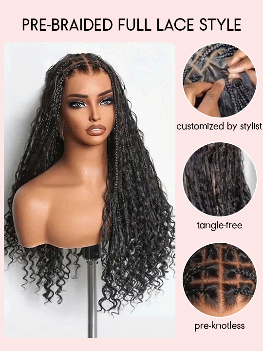 | Wig Type | Boho Knotless Braids with Curls Full Lace Wig 150% Density |