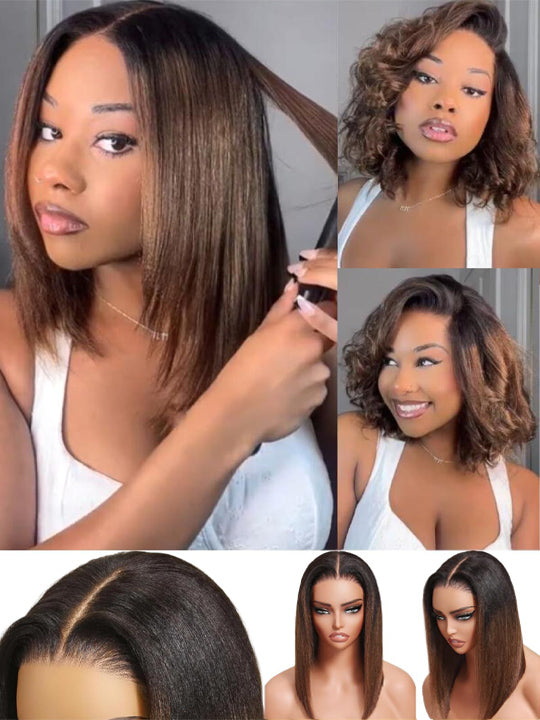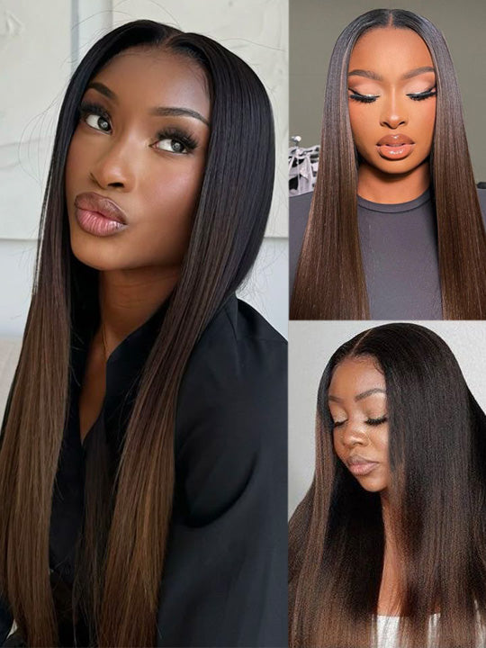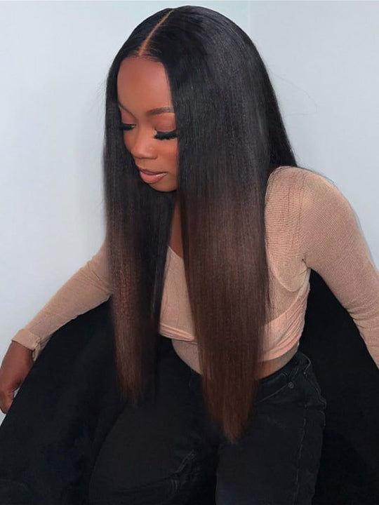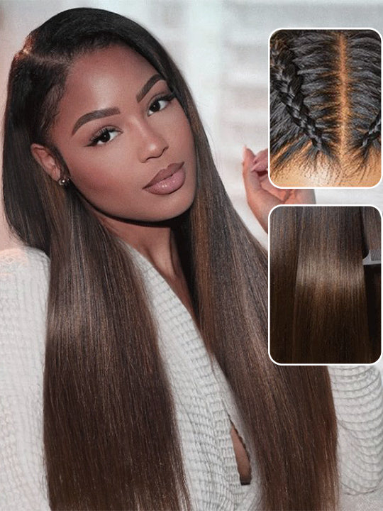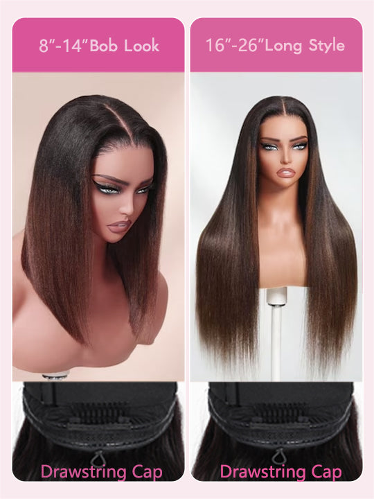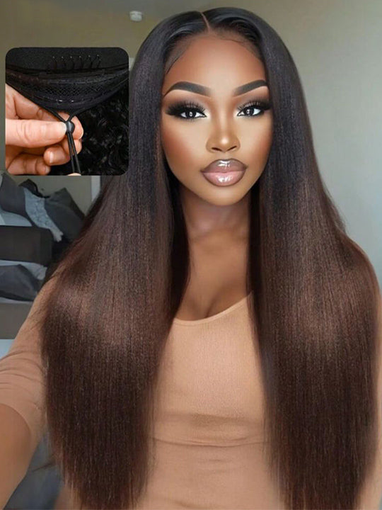 | Wig Type | Invisi Drawstring Ombre Brown Yaki Straight Wig |